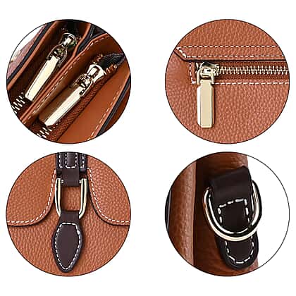 New Fall Collection- Genuine Leather Crossbody Bag with Shoulder Strap - Tan