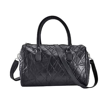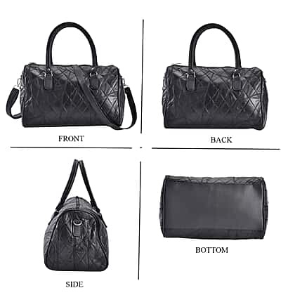 One Time Close Out Deal - Genuine Leather Duffle Bag with Handle Drop - Black