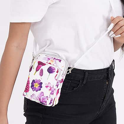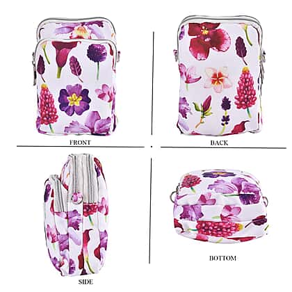 Oxford Flower Crossbody Bag With Zipped Pockets - White & Blue