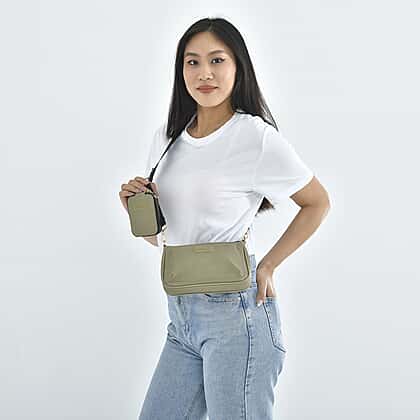 Passage - Faux Leather Crossbody Bag with RFID Protection and Removable Coin Pouch - Olive