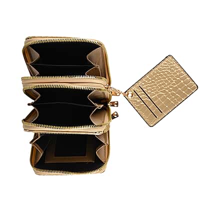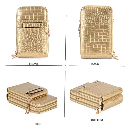 Passage Embossed Crocodile Pattern Crossbody Bag with Card Slot & Shoulder Strap - Gold