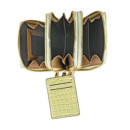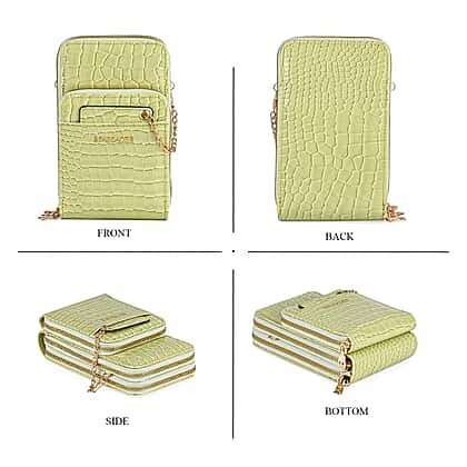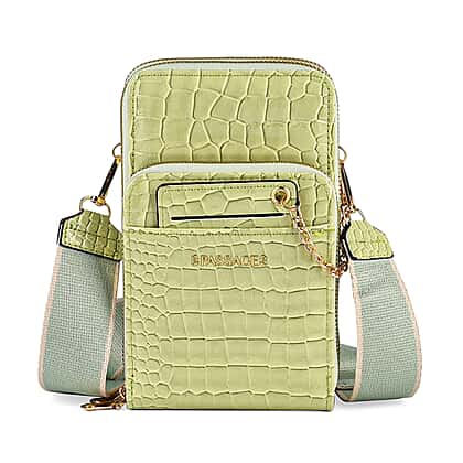 Passage Embossed Crocodile Pattern Crossbody Bag with Card Slot & Shoulder Strap - Pistachio
