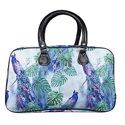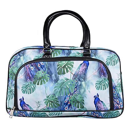Peacock Pattern Travel Bag with Shoulder Strap and Zipper Closure (Size:43x25x18Cm) - Green