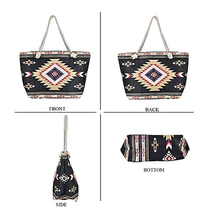 Polyester Tribal Tote Bag (Size 38x21x37 cm) - Black