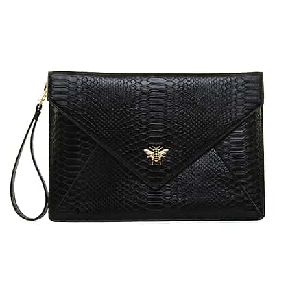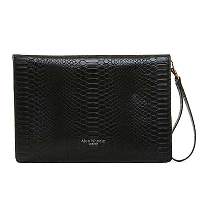 Limited Edition - ALICE WHEELER Chelsea Envelope Snake Pattern Clutch Bag - Black