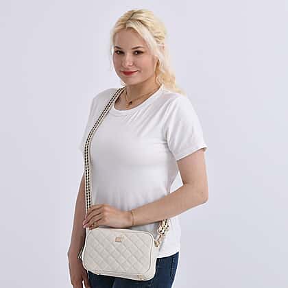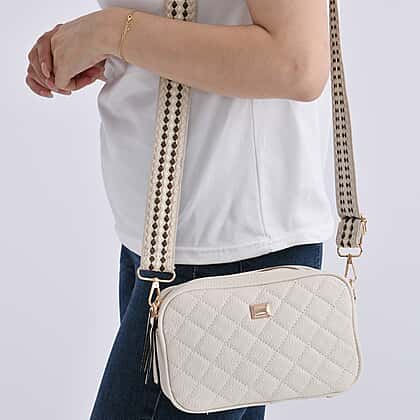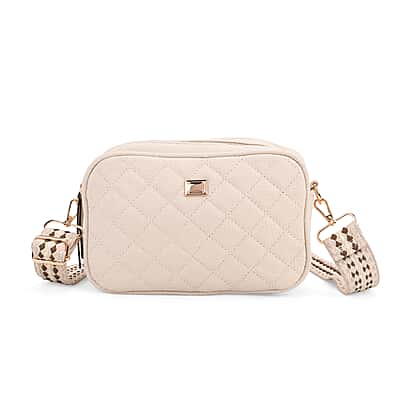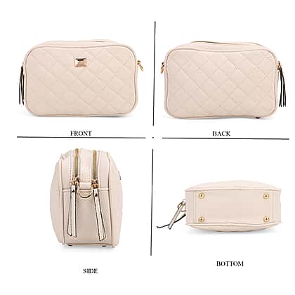 Prime Time Deal - Quilted Fully Lined Crossbody Bag With Adjustable Length Strap - Beige