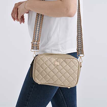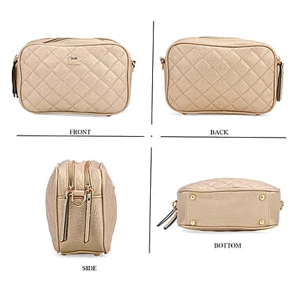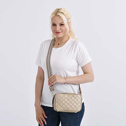 Prime Time Deal - Quilted Fully Lined Crossbody Bag With Adjustable Length Strap - Gold