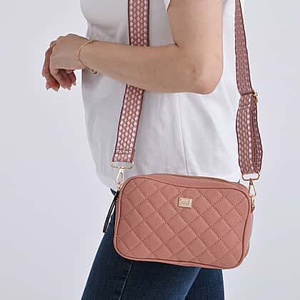 Prime Time Deal - Quilted Fully Lined Crossbody Bag With Adjustable Length Strap - Pink