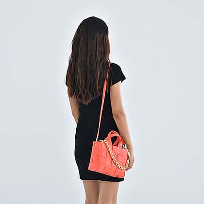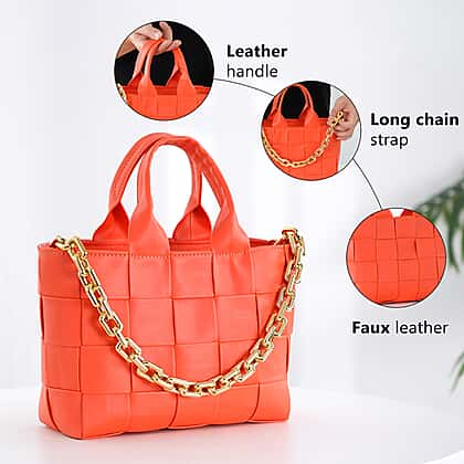 PU Geometrical Convertible Crossbody Bag with Metal Chain Handdrop - Orange