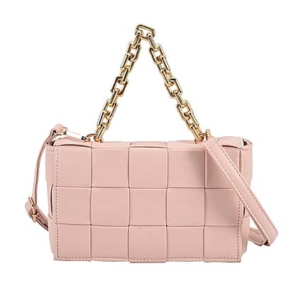 Geometrical Convertible Crossbody Bag with Metal Chain Handdrop - Pink