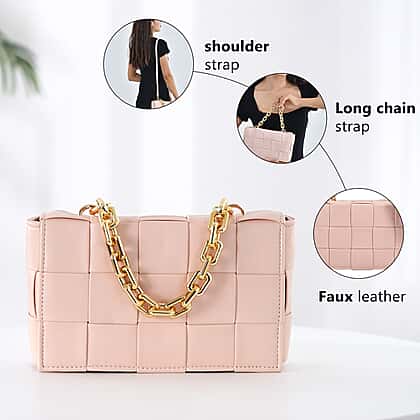 Make a stylish addition to your handbag collection with this stylish and trendy crossbody bag. It is designed from 100% faux leather, and the inner material is made from polyester, which makes it durable and long-lasting. It has a checkered geometrical design and contains proper space to keep your essentials. It has a convertible and detachable shoulder strap made of interlink metal chains and leather material; you can choose whatever style best suits you.