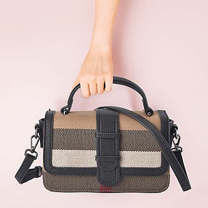 Closeout Deal Plaid Pattern Crossbody Bag with Detachable Strap - Black