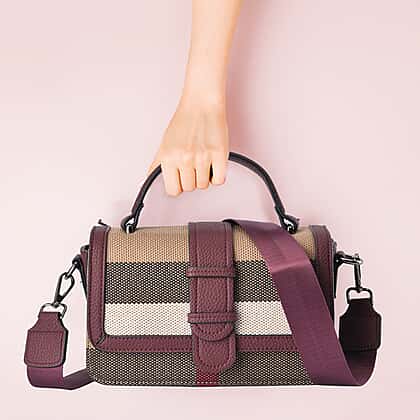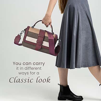 Closeout Deal Plaid Pattern Crossbody Bag with Detachable Strap - Burgundy