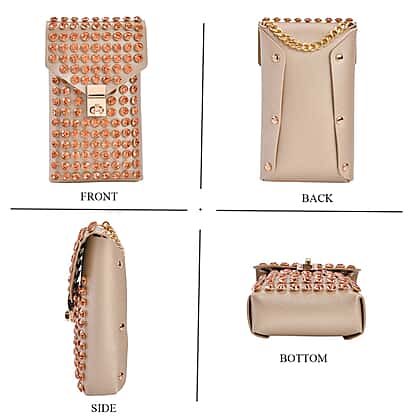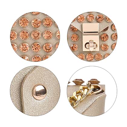 Crystal Studded Leatherette Crossbody Bag With Chain Shoulder Strap - Champagne