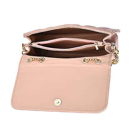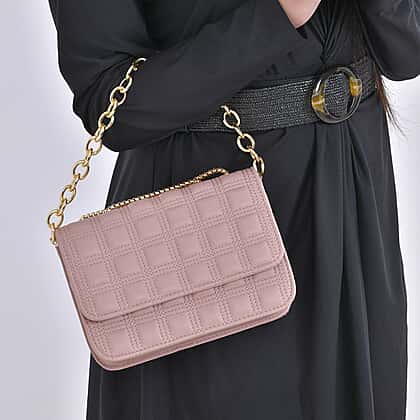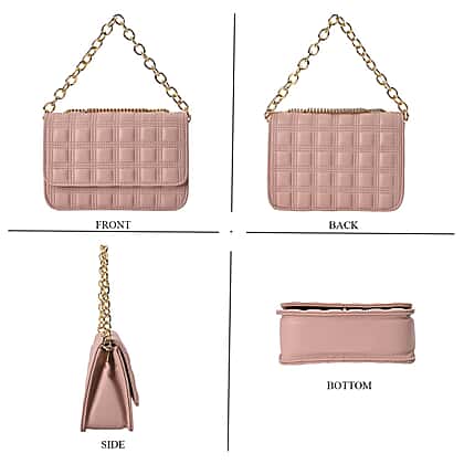 First Time Vicenza Closeout Quilted Checker Pattern Crossbody Bag With Metallic Chain - Pink