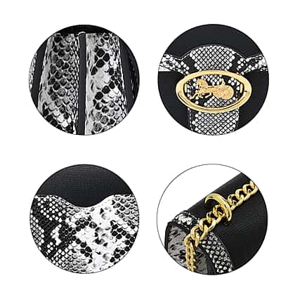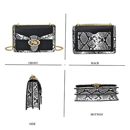 PU Snakeskin Crossbody Bag (Size 24x9x16 cm) - Black