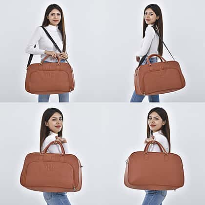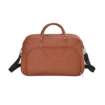 Closeout Deal - Leatherette Croc Embossed Holdall Travel Bag - Tan