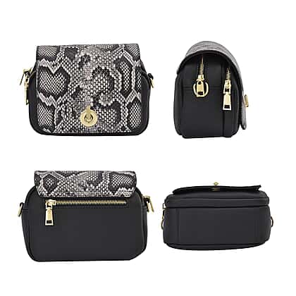 Sencilez Of Barcelona 100% Genuine Leather Snake Pattern Handbag with Shoulder Strap - Black