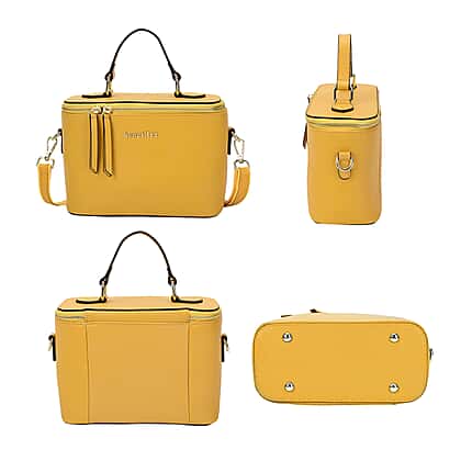 - HARDWARE: The silver toned-hardware with a yellow colour exterior creates an eye-catching appearance