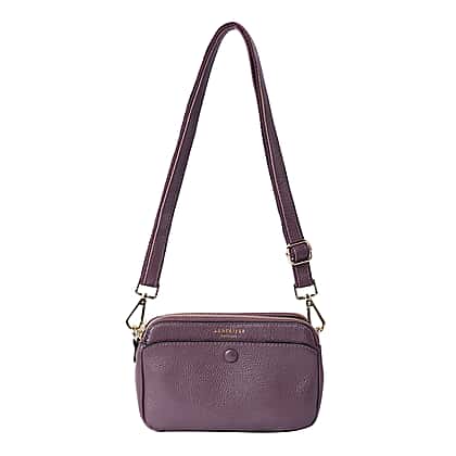 Sencillez 100% Genuine Leather Crossbody Bag with Adjustable Shoulder Strap in Purple