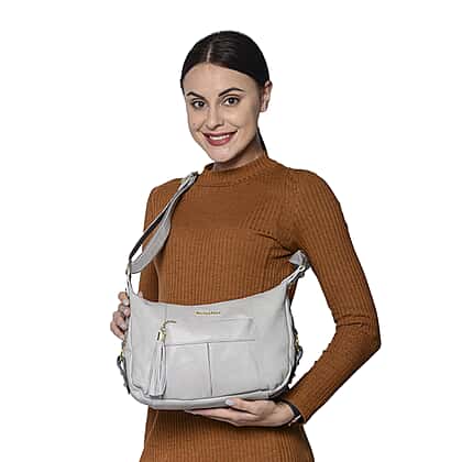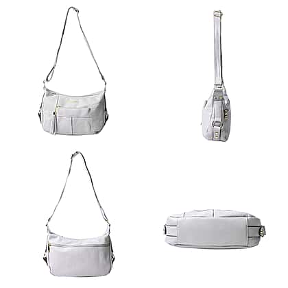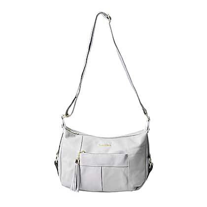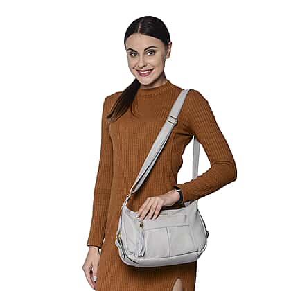 SENCILLEZ 100% Genuine Leather Crossbody Bag with Zipper Closure (Size 29x10x21cm) - Light Grey