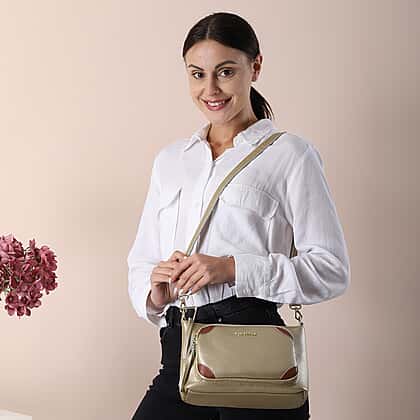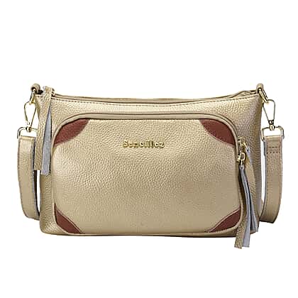 SENCILLEZ Genuine Leather Crossbody Bag with Detachable Strap and Zipper Closure - Gold