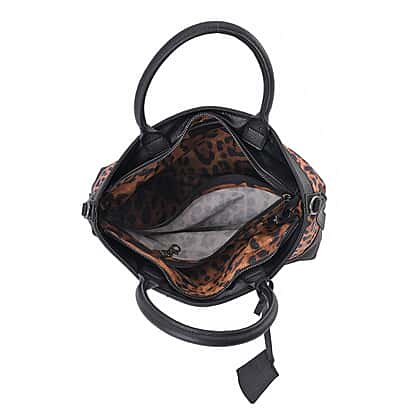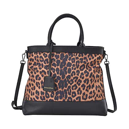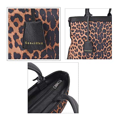 Sencillez Genuine Leather Leopard Convertible Bag with Detachable Long Strap - Tan
