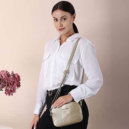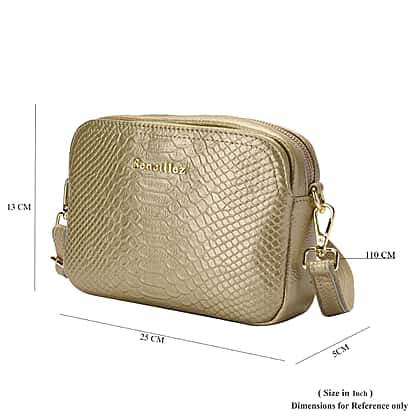 SENCILLEZ Genuine Leather Snakeskin Pattern Crossbody Bag with Detachable Strap and Zipper Closure - Green