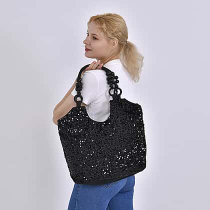 Sparkling Sequin Tote Bag (Size 45x10x36 cm) - Black
