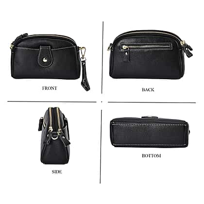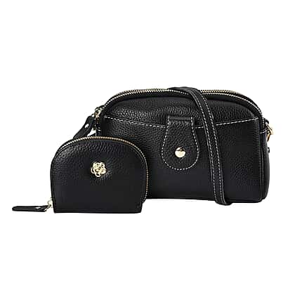 Set of 2 - 100% Genuine Leather Crossbody Bag & Card Wallet with RFID Protection - Black