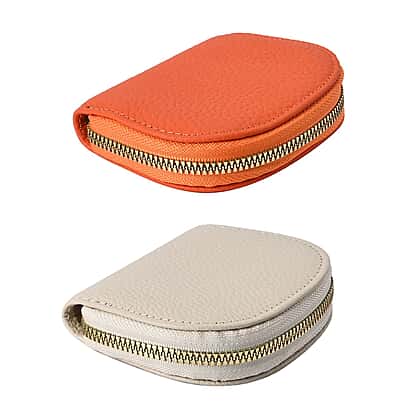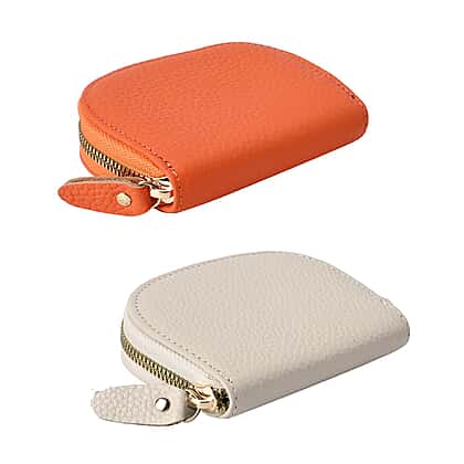 Set of 2 Genuine Leather Card Wallet with RFID Blocking & 10 Card Slots - Orange & Cream