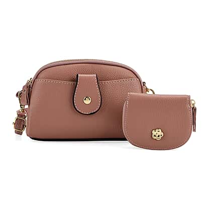 Set of 2 Genuine Leather Crossbody Bag & RFID Card Wallet - Dusty Pink