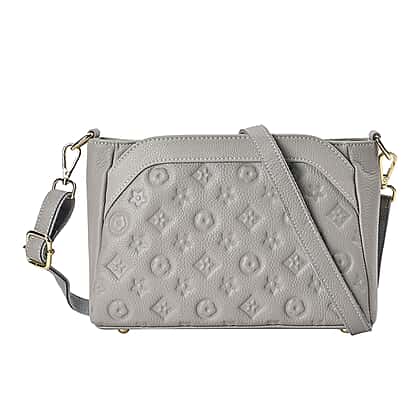100% Genuine Leather Crossbody Bag With Shoulder Strap - Grey