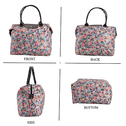 Set of 3 - Floral Pattern Tote Bag with Handle Drop - Grey