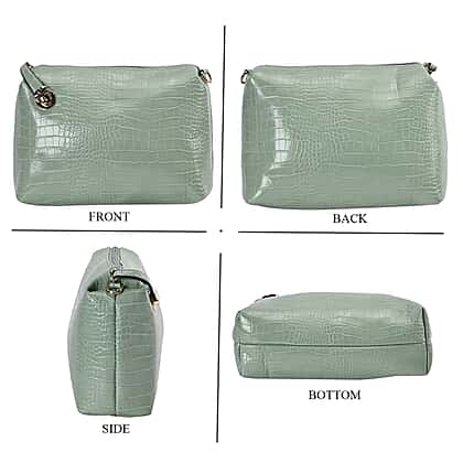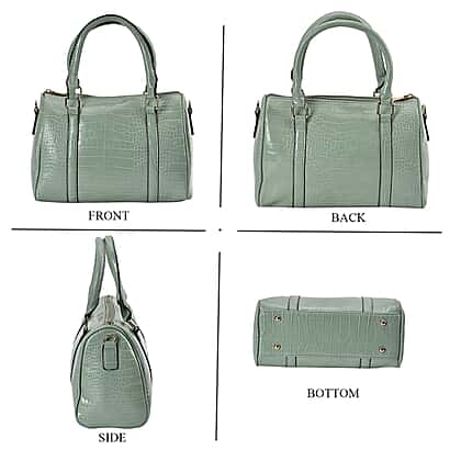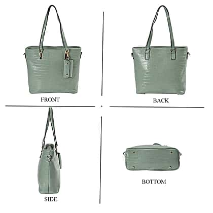 Closeout Deal - Set of 6 Croc Embossed Pattern Handbags (Incl. Tote Bag, Boston Bag, Crossbody Bag, Wallet, Wrist Bag, - Key Bag - Light Green