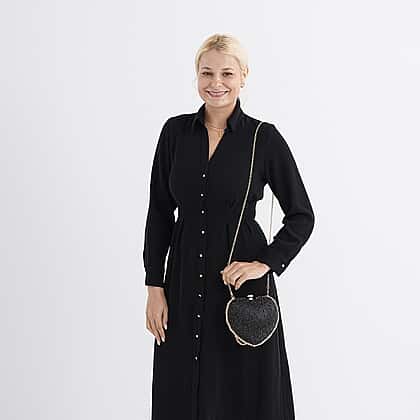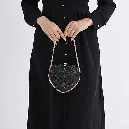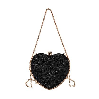 Sheeny Heart-Shaped Crystal Clutch Bag - Black