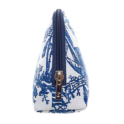For a luxe and artistic look, this bag set inspired by Chinoiserie art makes for an excellent choice. This set features a Chinoiserie Sling Bag and a cosmetic bag. The Chinoiserie design features a blend of European and East Asian design sensibilities. Crafted with leather and tapestry, both these bags feature striking blue patterns related to nature and scenic landscapes. The blue tones shine on the white canvas and offer a stunning play of contrast. The sling bag has leather straps, spacious interior,and comes with a zipper closure to keep your belongings safe. While the matching rounded cosmetic bag in the same design is perfect to store small essentials such as toiletries, makeup items, phone, etc.