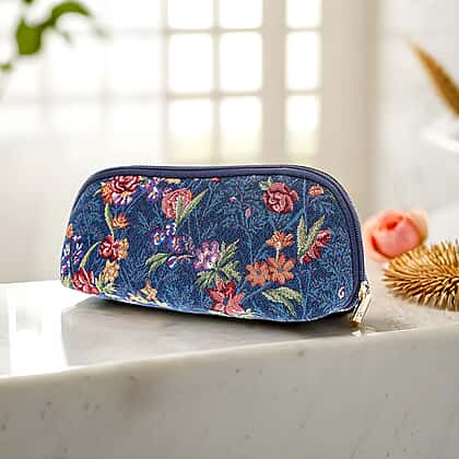 Signare Tapestry Fabric Makeup and Brush Bag - Flower Meadow Blue