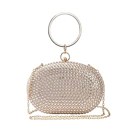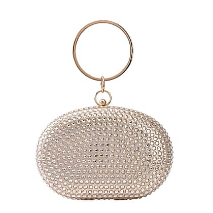 Shine through each gathering by carrying your keepsakes, phone and cash in this crystal-studded wristlet clutch. The fancy of this wristlet makes a perfect accessory addition to your dressed-up looks, attracting each onlooker's attention. The outer is made with durable material and has the shimmer of crystal-studded rounds. The cluster of crystals makes a perfect exuberance for your personality. The polyester-made inner gives a comfortable space for your essentials. The clutch closure has a ring link to carry, and the strap can be detached.