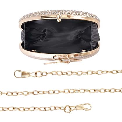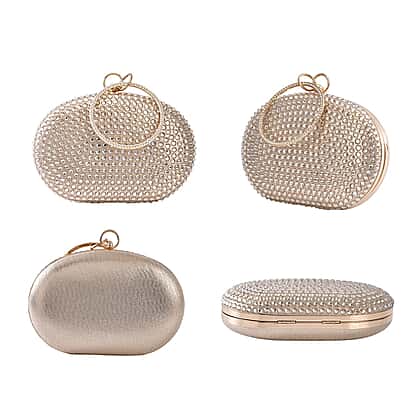 Small Elegant Crystal Studded Wristlet Clutch - Gold