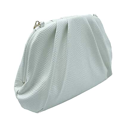 Soft Cloud Pouch Clutch Bag with Shoulder Chain Strap (115 Cm) - White