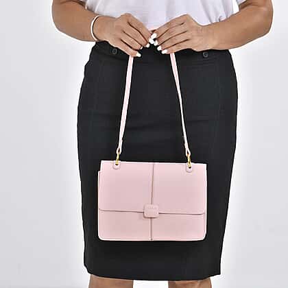 Solid Colour Shoulder Bag with Magnetic Lock - Pink