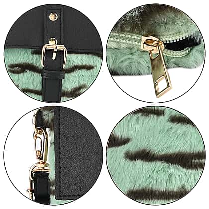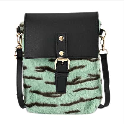 Stylish Zebra Stripe Pattern Leatherette Crossbody Bag - Green & Black
