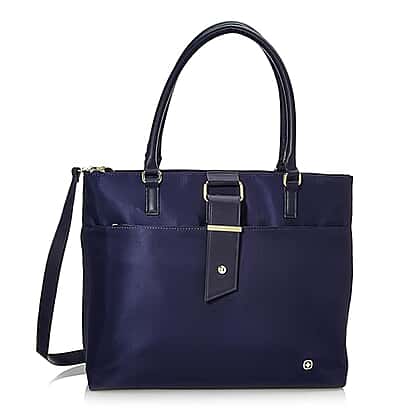 Innovative design fuses with classic elegance in the WENGER Eva 16-inch women's tote bag. Whether you’re catching a flight or leading a boardroom meeting, this bag exudes confidence and calm control. There’s a sleek removable padded sleeve to protect your devices and an ingenious expandable main compartment for extra space when you need it. Lightweight and versatile, it complements any outfit, making you feel prepared and organised wherever life takes you. Undo the central zip to reveal an extra section of fabric to expand the bag. Two top handles and a removable longer strap offer versatile carrying options.