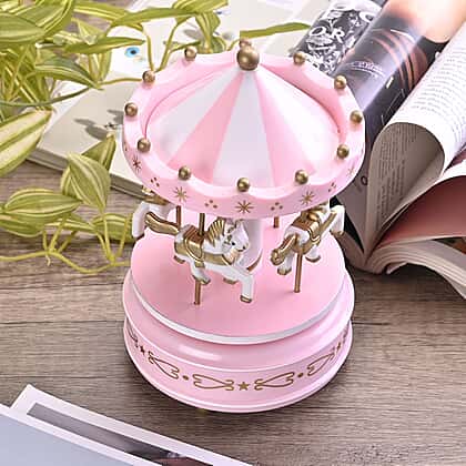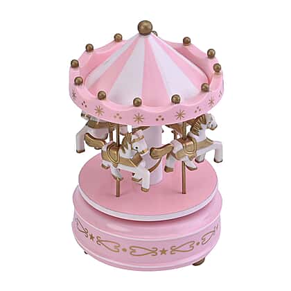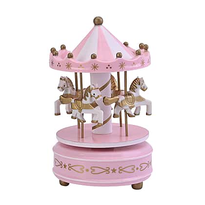 Handcrafted 4-horse Wood Carousel Musical Box - White & Pink
