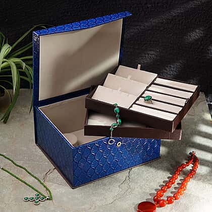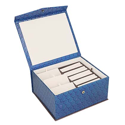 Handcrafted Embossed Leather 2 Tier Jewellery Box - Dark Blue