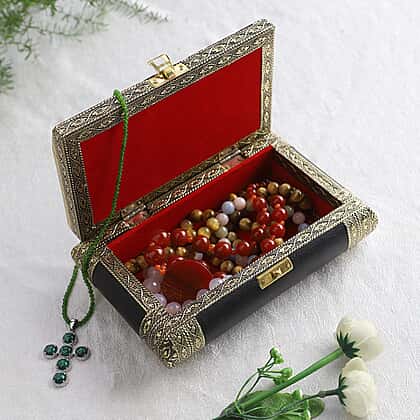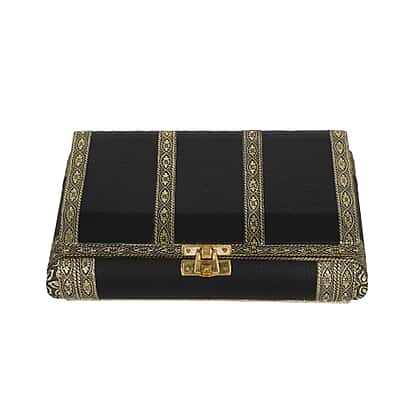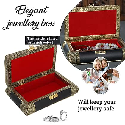 This oxidised jewellery box with leatherette offers a subtle decoration for your wardrobe. Crafted using leatherette material, embossed with oxidised aluminium foil and velvet casing to protect your jewellery from tarnishing. The lightweight of this box makes it easy to carry to different places. It features a beautiful floral pattern and has soothing colours. These boxes are fastened with an easy-to-use metallic clasp and are ideal for securing your jewellery pieces.