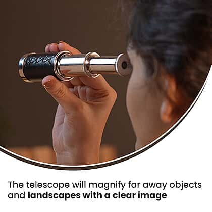 Get your explorer side turned on with this handcrafted telescope and get a vintage piece resting in your space. It gives you a clear image of faraway objects and landscapes. Made from solid alloy, it is reliable and long-lasting. The leather stitched handle gives you a good grip and easy carrying. You can keep it in your travel kit or place it on the shelf as a beautiful decoration. It comes wrapped in a wooden box with a high finish. The box has a design that adds a contemporary style to it. You can get it for yourself or gift it to someone who likes exploring new places or stargazing.
