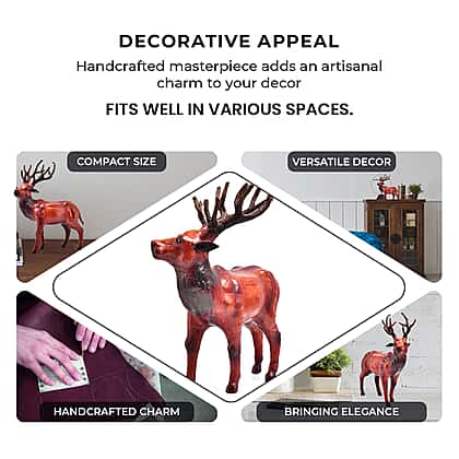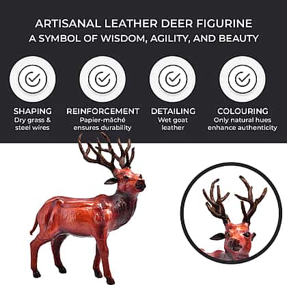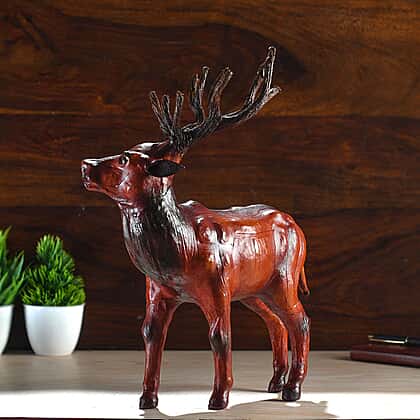 Handcrafted Pure Leather Deer Figurine (Size 33x28x10 cm) - Multi