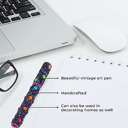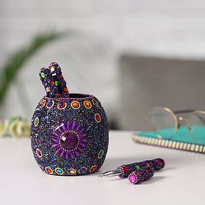 This handcrafted set of 5 blue rhinestone beaded pens with a matching holder makes the perfect gift for scribes and art lovers. A classic addition to your table decor, the ballpoint pens and holder have a beaded exterior that is not only aesthetically appealing but also a handy addition to your stationery. The pens and holders are lightweight and durable.